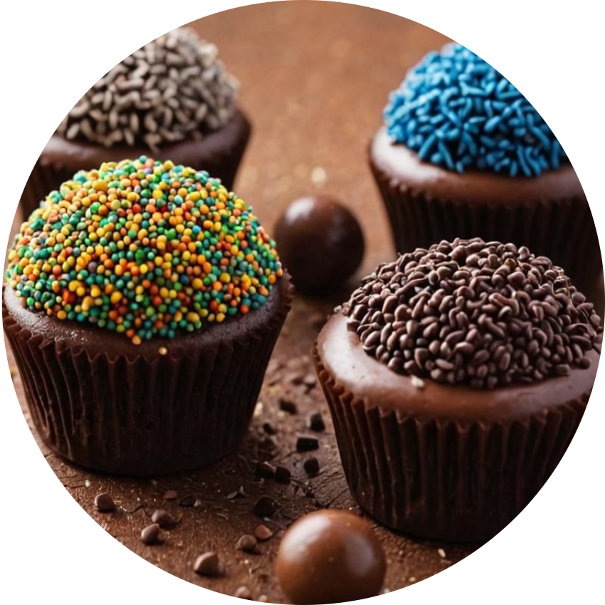 Delicie-se com nosso brigadeiro gourmet, uma verdadeira explosão de sabor que transforma cada mordida em um momento único de pura felicidade!